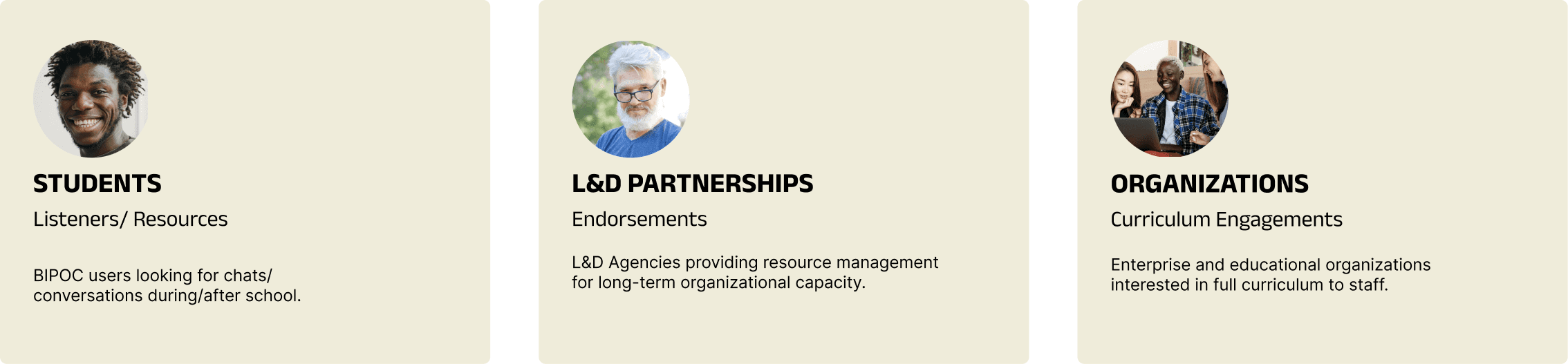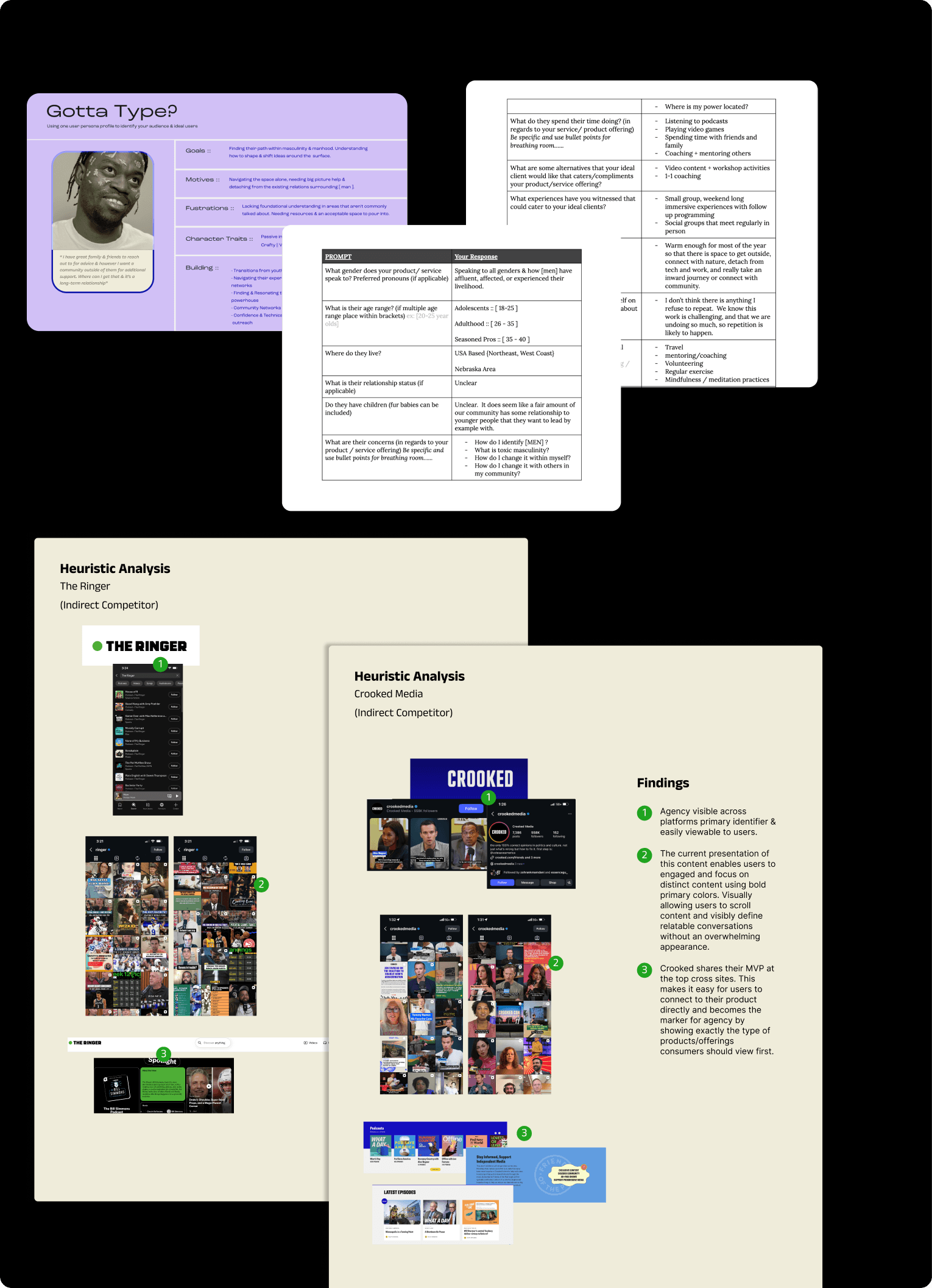 The challenge surrounded being primarily known for chats/conversations and their podcasts via Spotify while also communicating their key product offerings. This discovery helped center which user groups best suited their product offering long-term in order to prioritize them and their journey in the entire brand framework.
